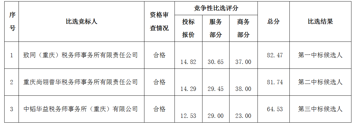 10月17日,重庆西永微电子产业园区开发有限公司对2024年税务清算审计项目进行竞争性比选,现将比选结果公示如下: